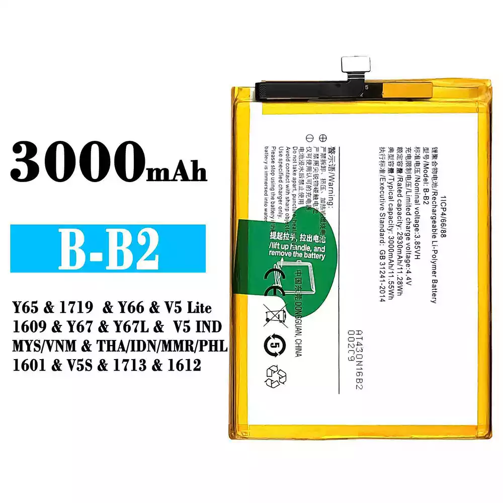 Bateria B-B2 para VIVO Y65 / 1719 / Y66 / V5 Lite / 1609 / Y67 / Y67L / V5 IND MYS VNM / THA IDN MMR PHL 1601 / V5S / 1713 / 1612