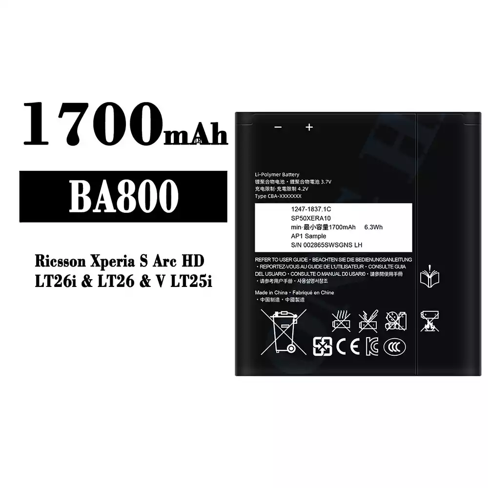 Bateria BA800 para Sony Ricsson Xperia S Arc HD / LT26i / V LT25i / LT26