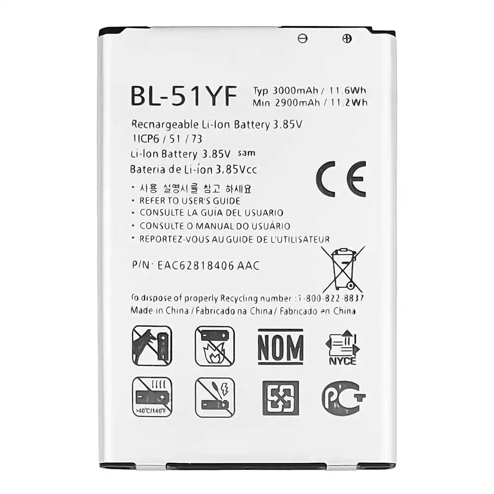 Bateria BL-51YF para LG G4 / H815 / H815TR / H815T / H815P / H812 / H810 / H811 / LS991 / VS986 / US991 / F500L / F500S / F500K / G4 Stylus / H631 / H540 / H635 / MS631 / H630D / H542 / H630 / G4 Dual / H818 / H818N