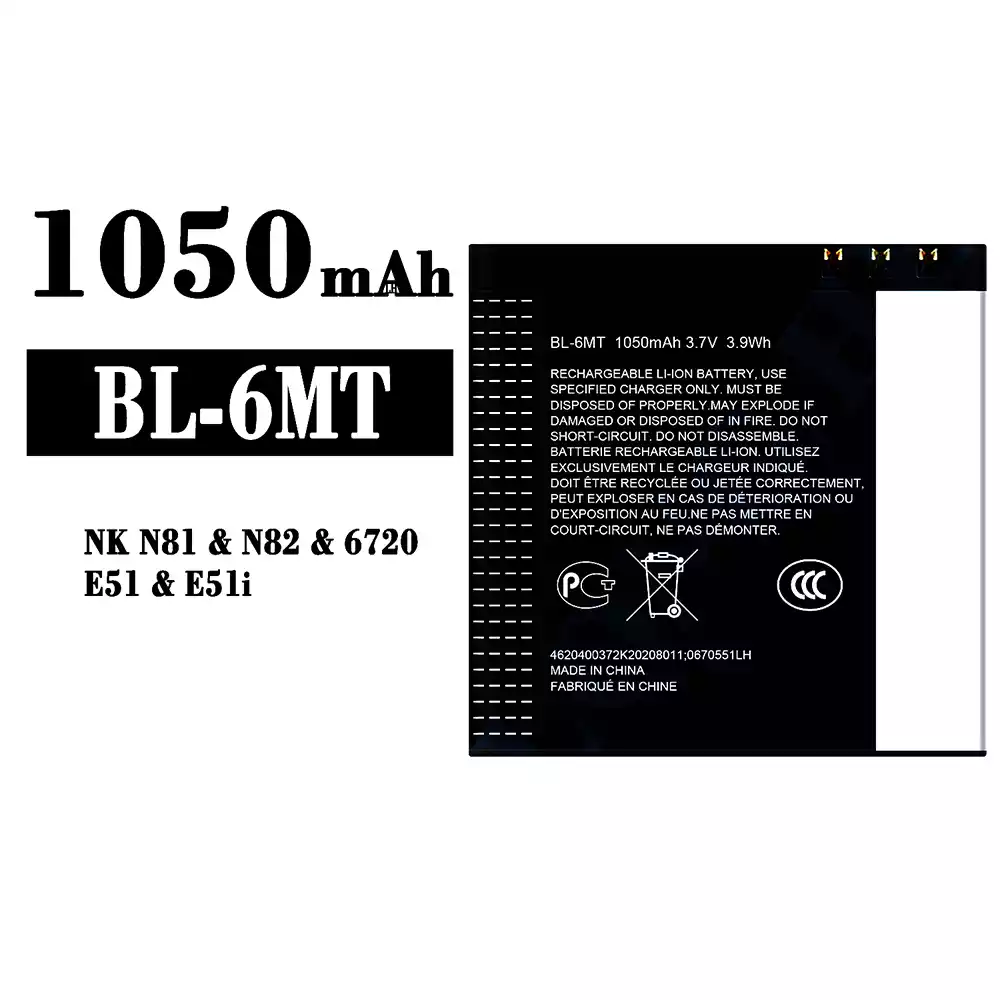 Bateria BL-6MT para Nokia NK N81/N82/6720/E51/E51i