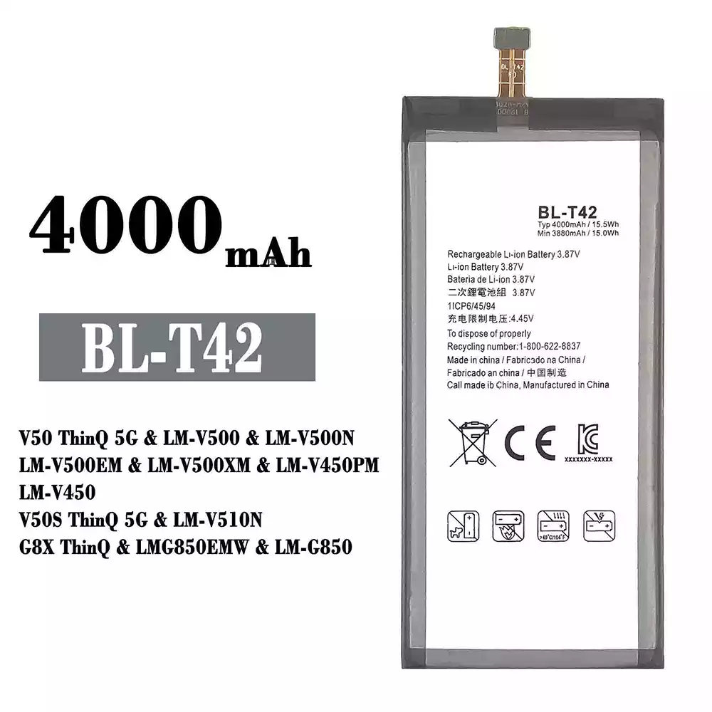 Bateria BL-T42 para LG V50 ThinQ 5G / LM-V500 / LM-V500N / LM-V500EM / LM-V500XM / LM-V450PM / LM-V450 / V50S ThinQ 5G / LM-V510N / G8X ThinQ / LMG85OEMW / LM-G850