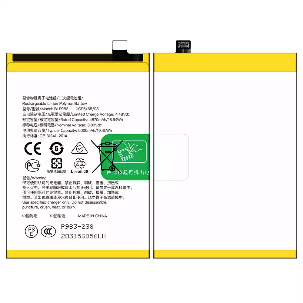 Bateria BLP983 para OPPO Reno 10 Pro/ Reno 10 Pro 5G