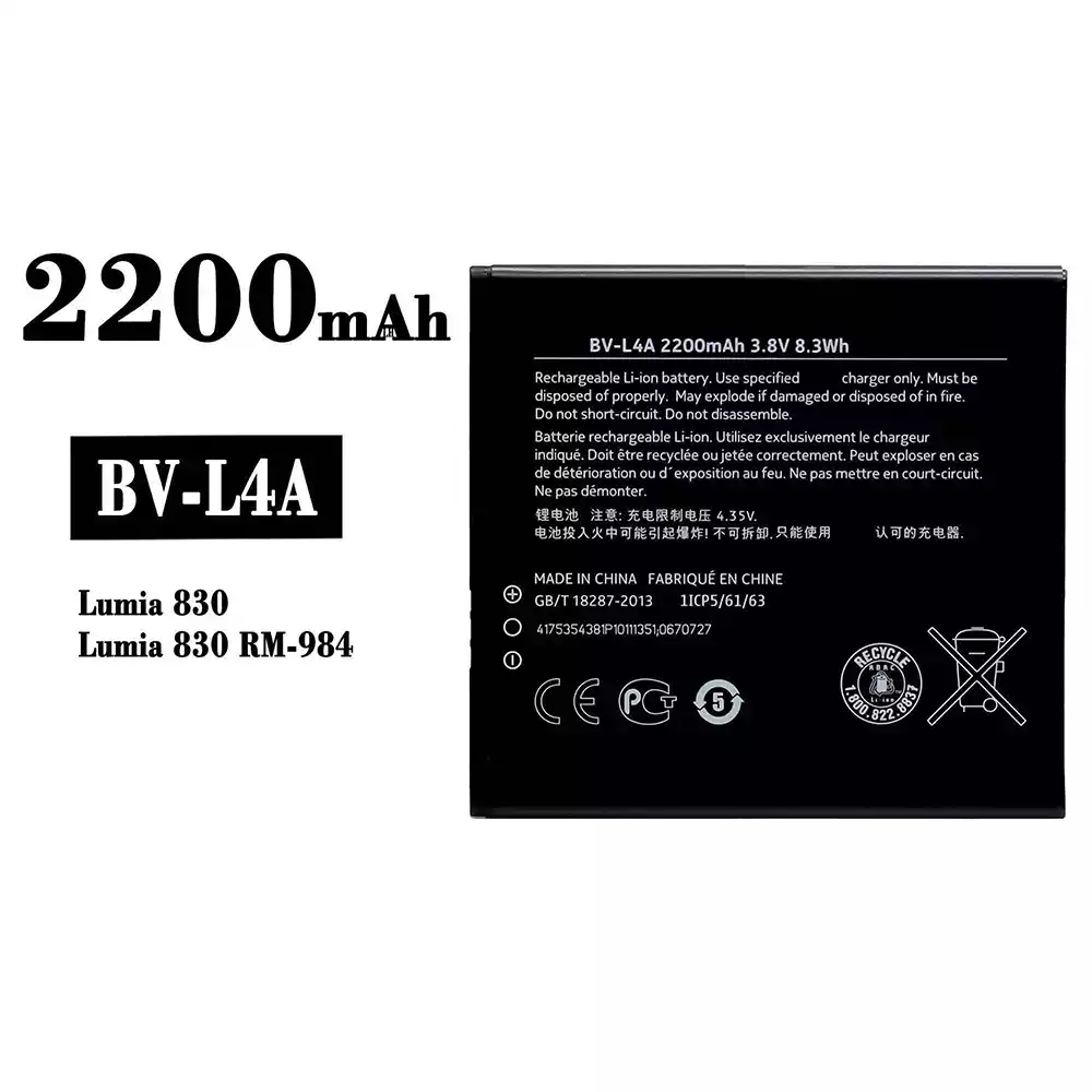 Bateria BV-L4A para Nokia Lumia 830 / RM-984