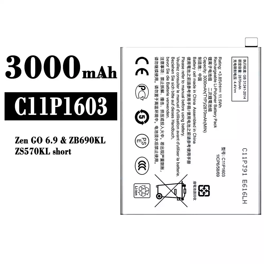Bateria C11P1603 para Asus Zen GO 6.9 / ZB690KL / ZS570KL Short