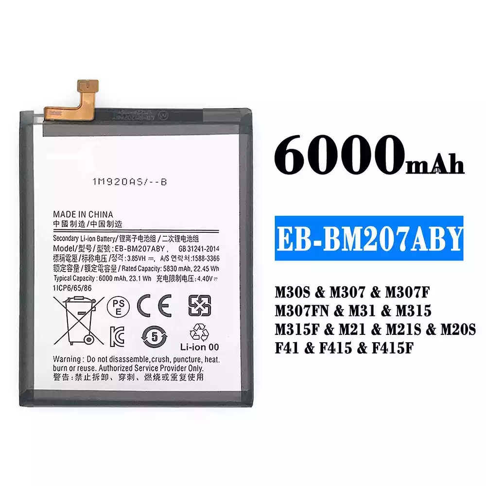 Bateria EB-BM207ABY para Samsung M30S/M307/M307F/M307FN/M31/M315/M315F/M21/M21S/M20S/F41/F415/F415F