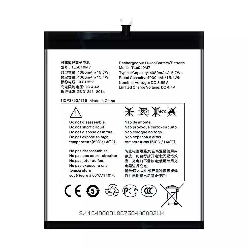 Bateria TLP040M7 para Alcatel